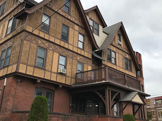 Historic apartment building Bedford Terrace has 20 unique 1, 2, and 3 bedroom – one of a kind apartment layouts. Unique curved walls, archways and hardwood flooring details are in many apartments in addition to extra-large closets, and individual apartment storage space. Heat and hot water included.